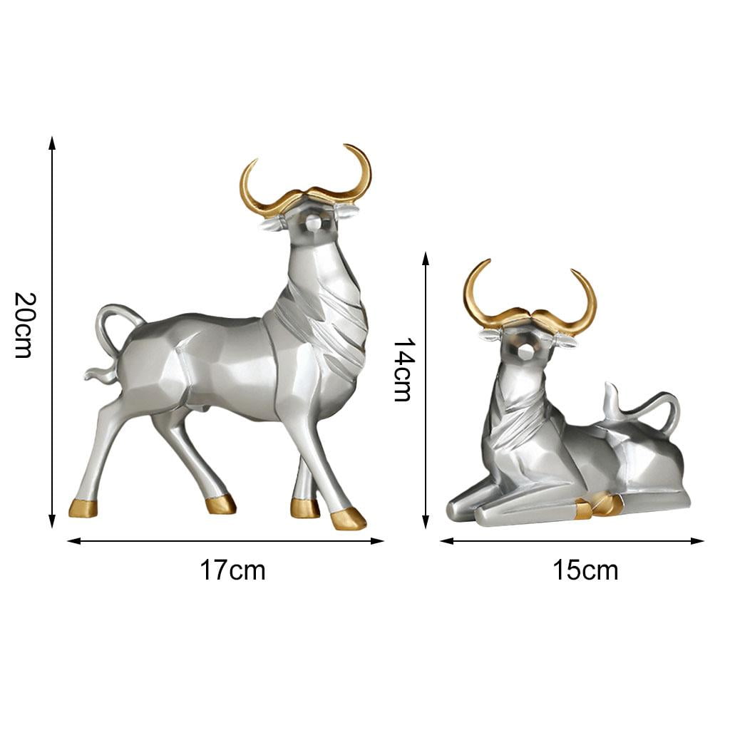 2pcs Statue Bull Sculpture Figurine Feng Shui Art Modern Resin Animal For Desk Shelf Living Stand Ornament Silver Walmart Com
