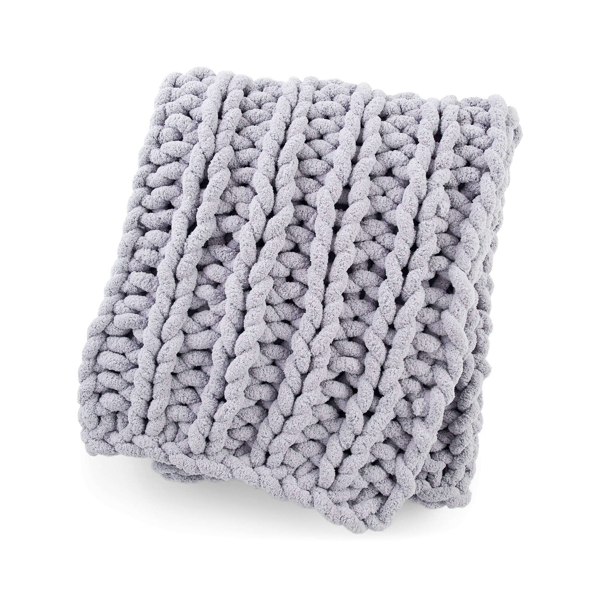 Buy Chunky Knit Blanket Throw Chenille Yarn Knitted Blanket Crochet Blanket Cable Knit Throw Blanket Couch Bed Weighted Chunky Blanket Gift Light Grey 40 79 Online At Low Prices In India