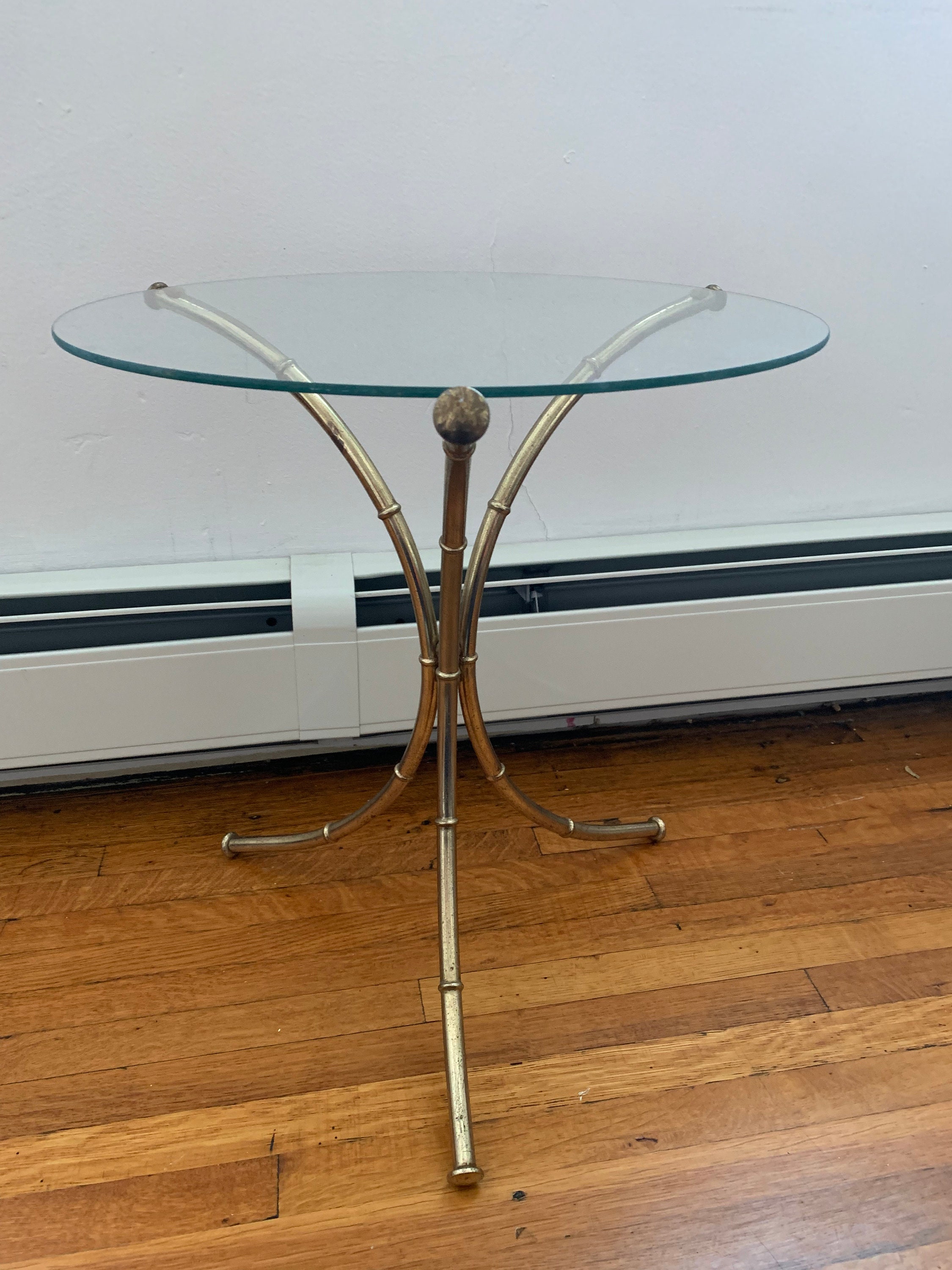 Https Www Pamono Eu French Faux Bamboo Brass Side Table With Clear Glass And Paw Feet 1960s